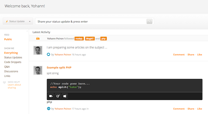 Comme vous pouvez le voir dans la vidéo ci-dessus il est très facile de partager un statut, une portion de code et ce afin de créer une communauté. Sans nul doute que dès lors que le service sera ouvert à tous, nous devrions avoir de réelle communauté active autour des différents langages.