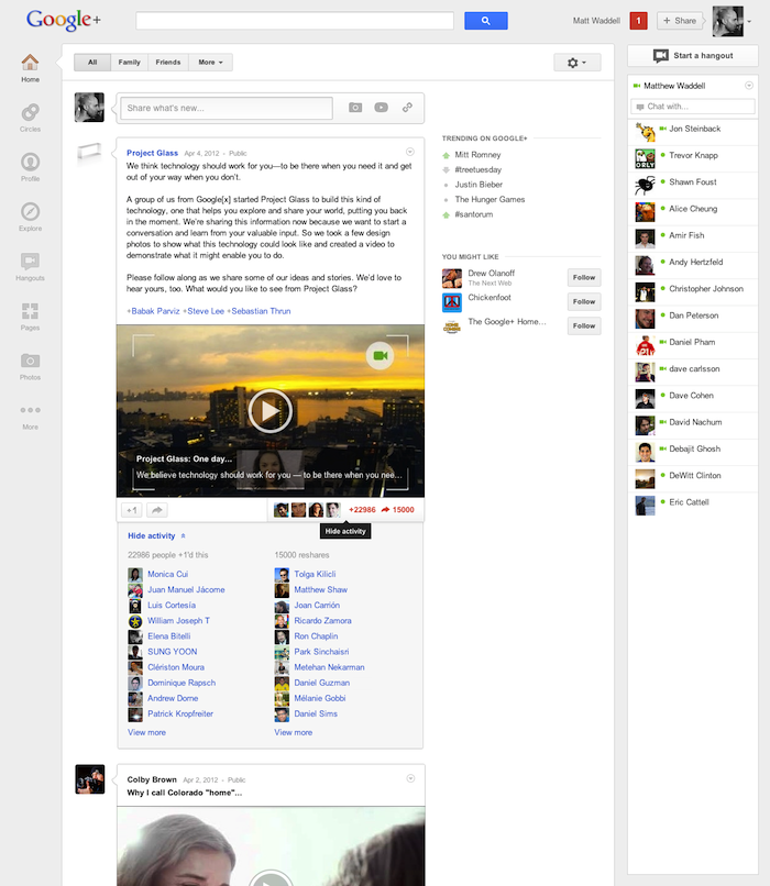 Google a également mis à jour la conception de ses Hangouts sur Google+, et ce en lançant une page dédiée aux Hangouts.