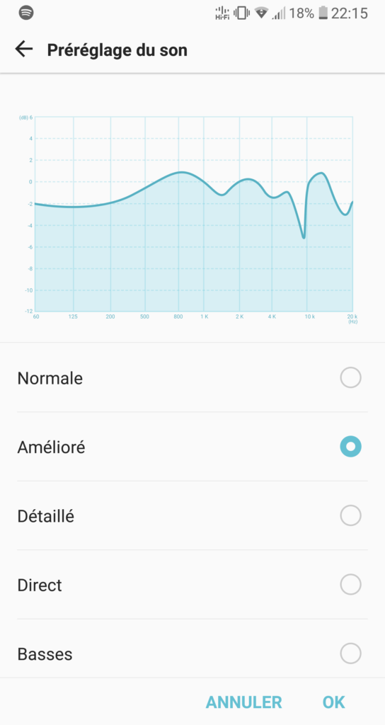 Bien entendu, cet effet « amplificateur » est d’autant plus impressionnant lorsque votre source audio est de qualité (fichier Wav par exemple), mais même un fichier Spotify, la différence se fait ressentir. Dès que vous activez cette fonctionnalité du LG V30, vous redécouvrez littéralement vos musiques.