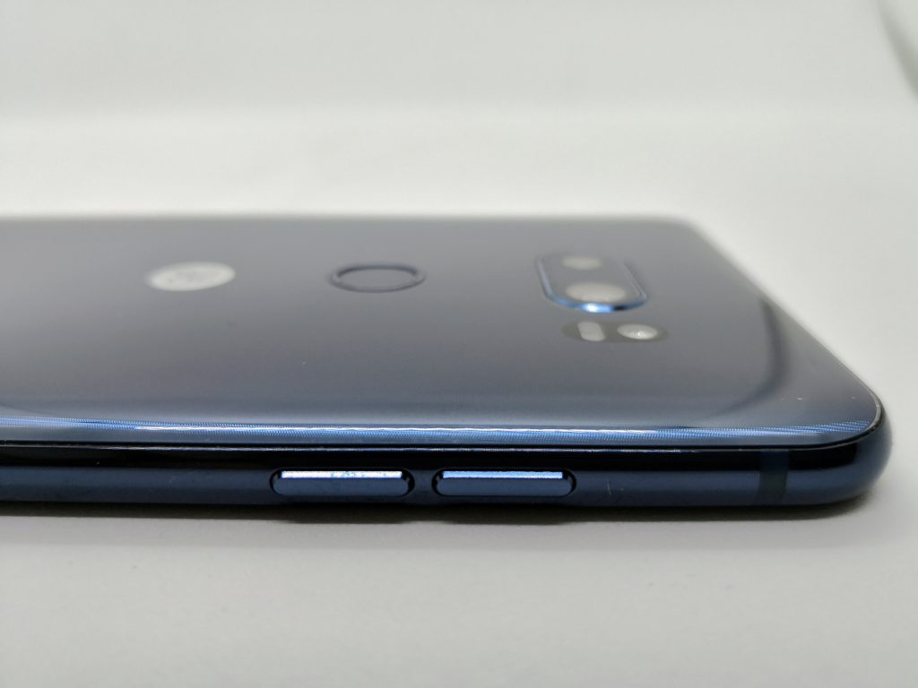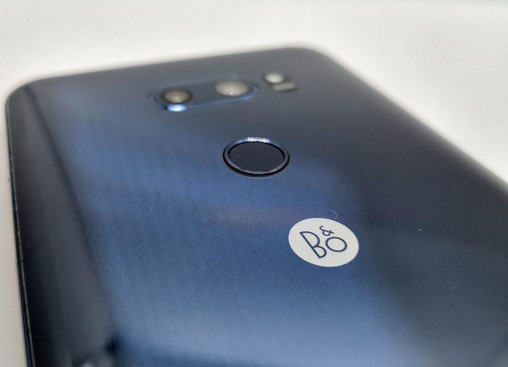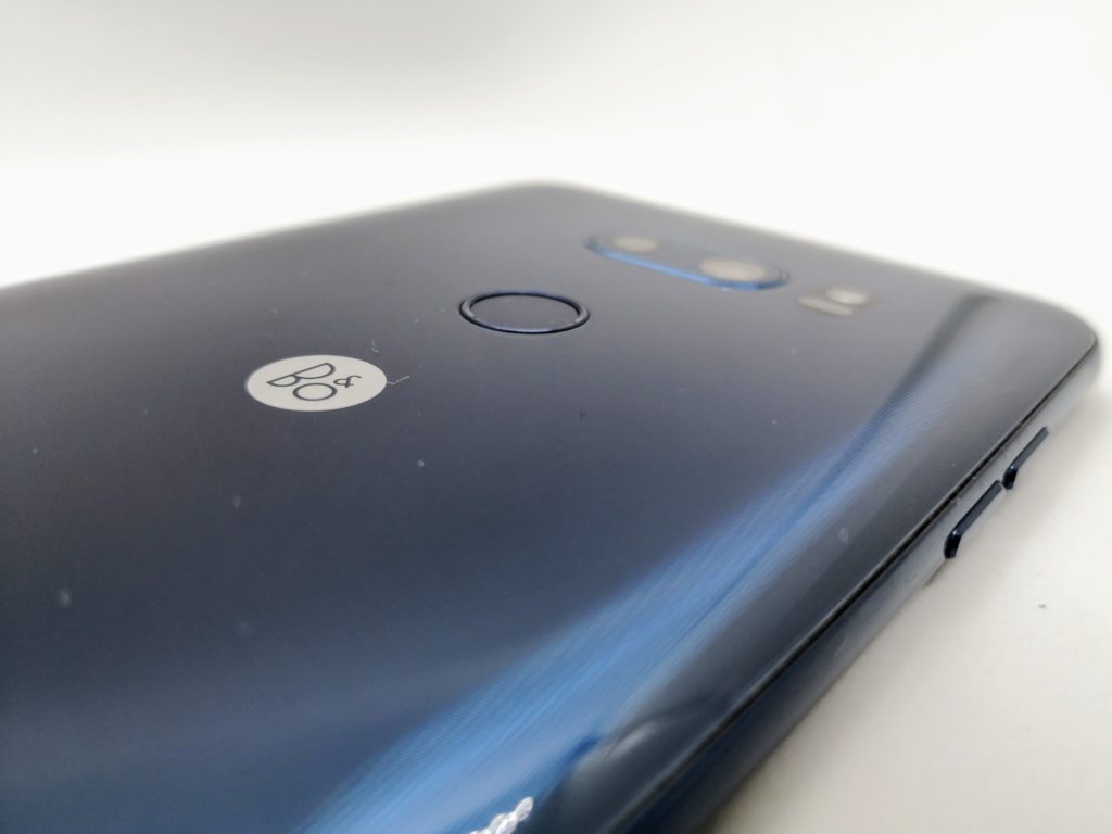 Vu qu’il n’y a plus la place de mettre le logo du constructeur sur la face avant, on retrouve le logo LG en bas du dos de l’appareil. Lequel s’additionne au logo de Bang et Olufsen, le partenaire audio. Malheureusement, il est un peu trop visible et gâche l’aspect global de l’appareil. C’est dommage, car le LG V30 est vraiment beau. Ses tranches en aluminium lui donnent un aspect vraiment premium, et assure une certaine solidité à l’appareil. La seule petite critique qu’on peut lui faire, c’est qu’entre la bordure en aluminium et le verre du dos de l’appareil, il y a un petit espace qui attire fâcheusement la poussière.