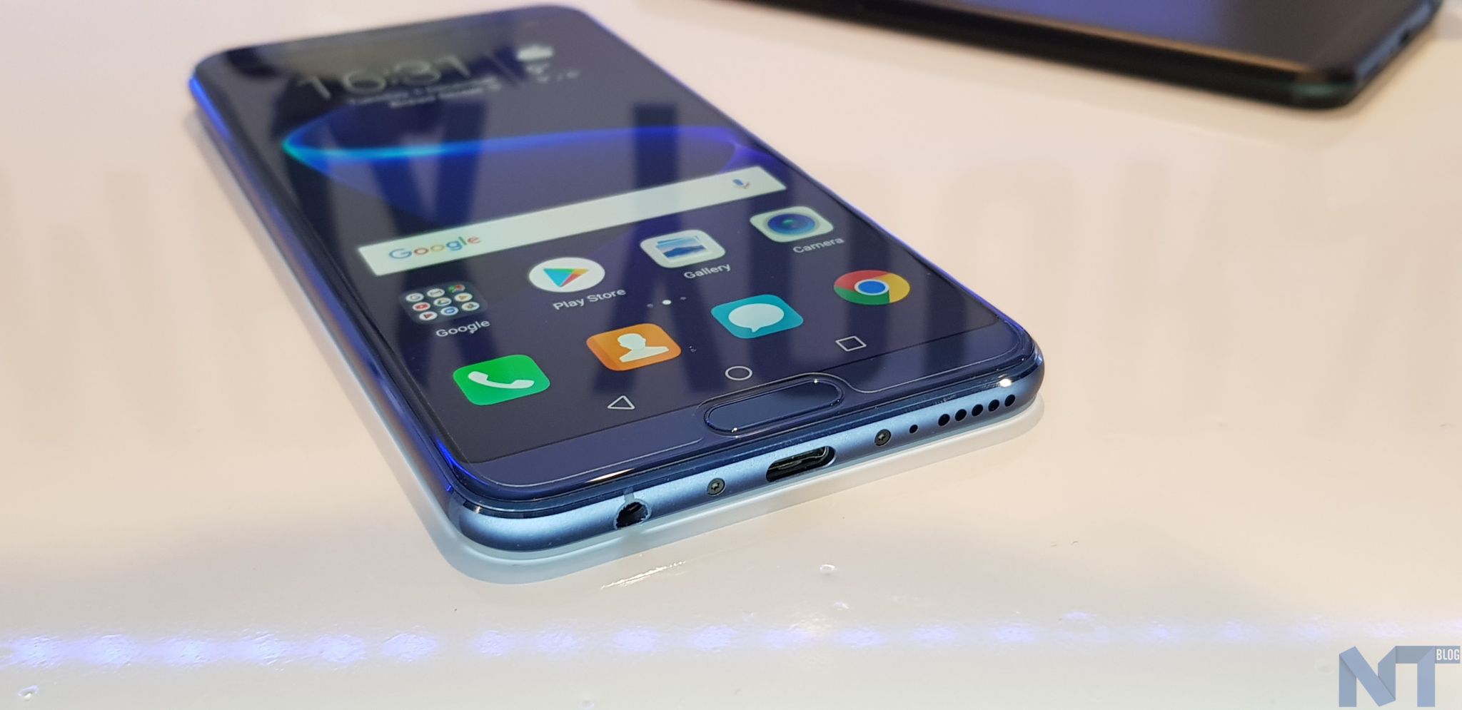 Le Honor View 10 a un joli design unibody en aluminium, et va être disponible dans les coloris noir ou bleu marine. J’ai remarqué que le modèle noir est un vrai nid à empreintes digitales, mais il est agréable et tient parfaitement en main par rapport au glissant Honor 8.