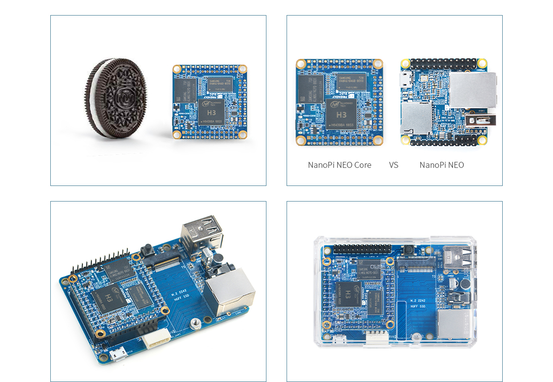 Un NanoPi Neo Core d’entrée de gamme est livré avec 256 Mo de RAM DDR3 et pas de stockage. Vous pouvez payer 10 dollars de plus pour obtenir un modèle avec 512 Mo de mémoire et 8 Go de stockage EMMC. Le NanoPi Neo Core2 d’entrée de gamme est livré avec 1 Go de RAM et 8 Go de stockage eMMC.