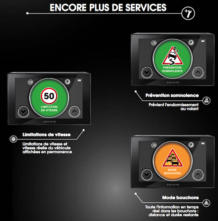 Donc, comme je vous l’annonçais dans l’entête de cet article, la firme vient de sortir une nouvelle version de son Coyote. Ce “Nouveau Coyote”, on pourrait y voir un semblant de copie au “Nouvel iPad”, va offrir des services d’alerte toujours plus fiables. Pour ce faire,la société s’appuie sur une quantité de serveurs non négligeables qui traitent et filtrent les informations et ce afin de confirmer et infirmer les alertes, évitant ainsi les fausses alertes. D’autre part, concernant la limitation de vitesse en vigueur, Coyote a élaboré une solution lui permettant, en cas de doute, de vérifier la correspondance de ce qui est affiché avec la réalité, en faisant intervenir ses clients.