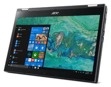Si vous aimez l’idée du Swift 7, mais avez besoin d’un modèle entièrement convertible à 360 degrés, Acer a un autre nouveau portable pour le CES. Le Acer Spin 3 (SP314-51) a été réactualisé avec des processeurs Intel Core de 8e génération, tandis que l’écran a été réduit, passant de 15,6 pouces de l’ancien modèle à 14 pouces sur la version 2018. Ce dernier a toujours une résolution full HD, et peut tourner sous différents modes — portable, tablette et tente — à l’aide de sa charnière.
