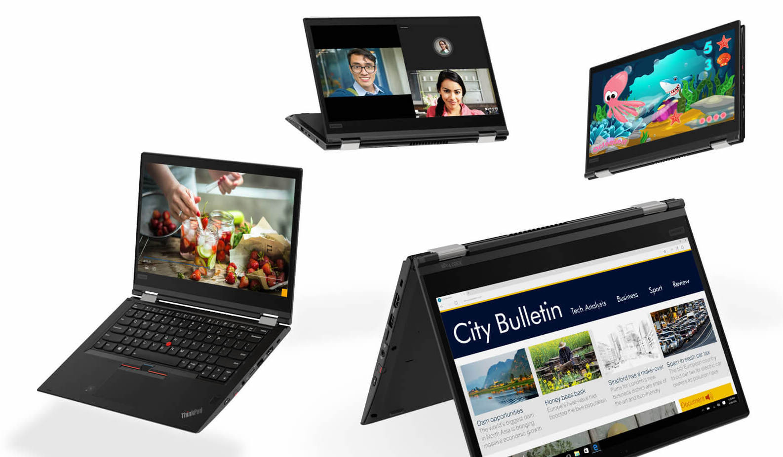 Le ThinkPad X1 Yoga de 3e génération est un convertible à 360 degrés, retournant son écran tactile HDR de 14 pouces d’une résolution de 2 560 x 1 440 pixels entre les orientations d’un ordinateur portable, d’un mode tente et d’une tablette. Comme le ThinkPad X1 Carbon, il a le même choix de processeurs, de puces graphiques, de mémoire vive (RAM) et de stockage. Il va également offrir une autonomie de 15 heures, affirme Lenovo.