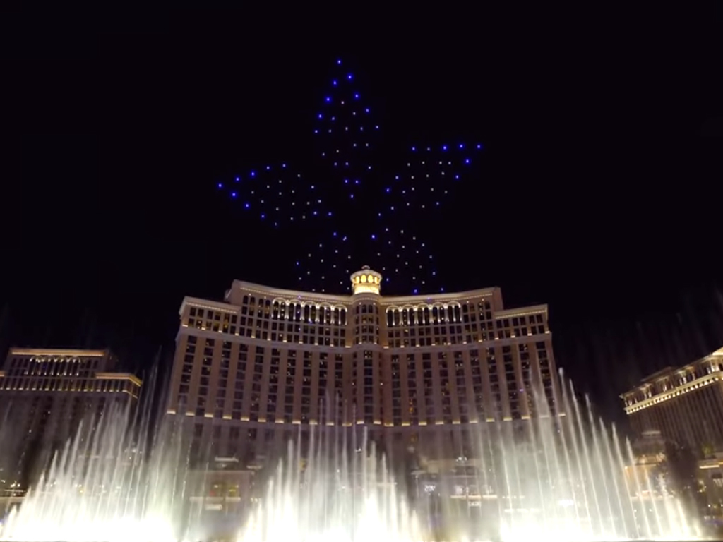 Intel voulait faire quelque chose d’intéressant avec tout un tas de drones, et la société l’a fait à Las Vegas pour le CES 2018. Un joli spectacle de lumières dans plus de 4 milliards de combinaisons de couleurs a survolé les Fontaines du Bellagio, se moquant du pitoyable et légendaire spectacle d’eau ci-dessous.