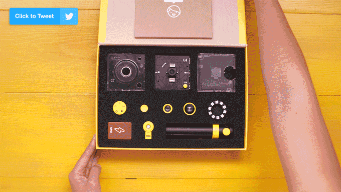 Contrairement à la plupart des jouets d’aujourd’hui qui parviennent à attirer l’attention pendant quelques secondes, le Kano Camera Kit demande aux jeunes esprits créatifs de brancher en premier lieu les pièces, de connecter les circuits à un ordinateur monocarte, d’ajouter un flash, un bouton, une batterie et de choisir entre un objectif grand-angle, fish-eye ou macro. Avant même de s’en rendre compte, les aventuriers en herbe pourraient construire leur première technologie, qui reçoit ensuite des instructions en utilisant un logiciel simple et coloré basé sur un simple glisser-déposer.