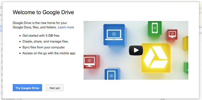 Une fois fait, vous aurez un message vous invitant à utiliser Google Drive ! Foncez !