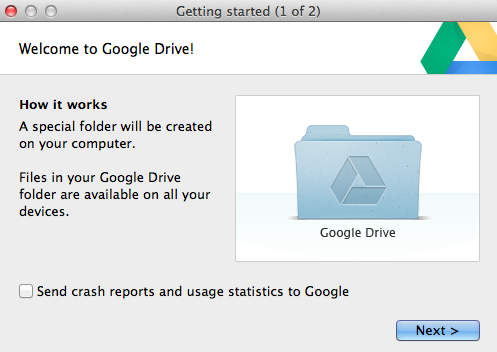 Une fois fait, vous serez invité à télécharger Google Drive sur votre Mac, et de là copier l’application dans le dossier “Applications” de votre Mac.