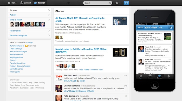 Twitter a annoncé hier quelques nouvelles améliorations à son onglet “Découvrir”. Ce dernier va devenir beaucoup plus personnalisé, et va ainsi afficher du contenu basé sur les tweets qui sont populaires parmi les gens que vous suivez et qui vous suivent.