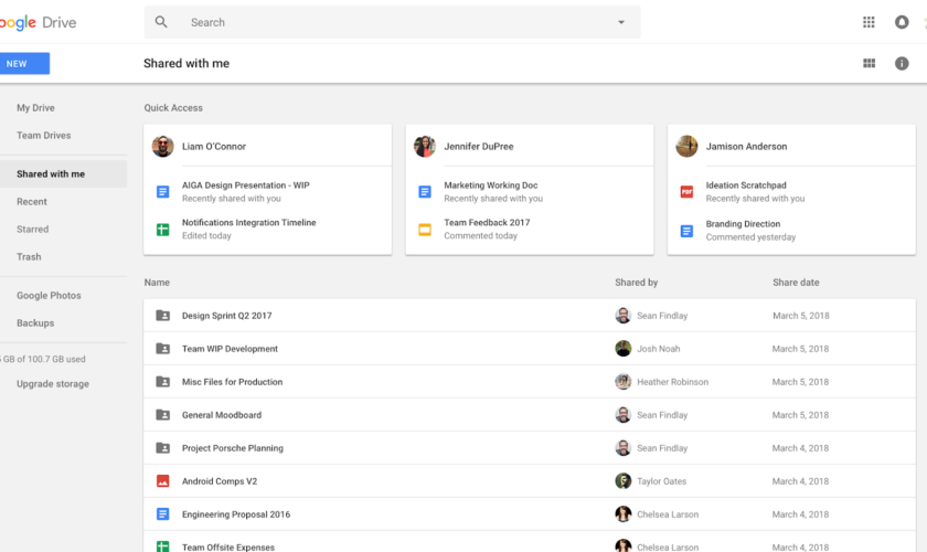 Grâce à l’intelligence artificielle, Google Drive commence à prédire le contenu que vous recherchez, ainsi que les personnes susceptibles de vous intéresser. Selon Google, la recherche de fichiers basés sur le propriétaire du contenu est la méthode la plus populaire. Pour cette raison, Google va également commencer à organiser le contenu « Partagés avec moi » d’une manière qui montre les gens en plus des fichiers.