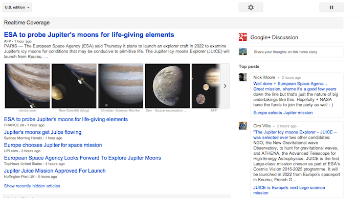 Many news stories inspire vibrant discussions on Google+, and today we’re starting to add this content to both the News homepage, and the realtime coverage pages. This way you can see what your circles, journalists covering the story and notables like politicians or others who are the subjects of stories have to say about breaking news, and even contribute to the discussion directly from Google News.