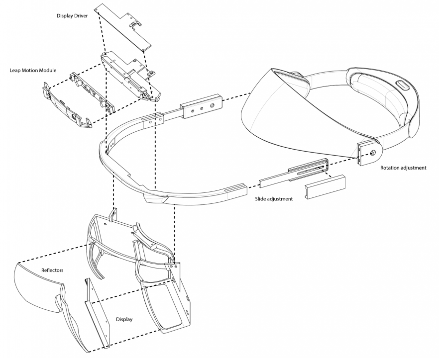 Pour faire ce casque, l’équipe de Leap Motion a utilisé un couple de smartphones de 5,5 pouces. Ils ont placé ces smartphones de chaque côté du visage du porteur, et reflété leurs images vers l’intérieur. Avec cette configuration, ils ont quelque chose comme un casque avec des visières d’un cyborg. Mais rassurez-vous, la firme ne s’est pas arrêtée là.