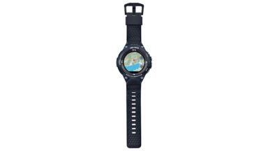 Casio a incrusté plusieurs capteurs pertinents pour les smartwatches dans la WSD-F20A, comme un tracker d’activité, un altimètre, un baromètre et une boussole numérique. Ceux-ci sont rejoints par l’application Moment Setter+ de Casio, un microphone et d’un écran LCD double couche. Pour finir, un bracelet et une boucle en uréthane noir complètent les caractéristiques de la montre.