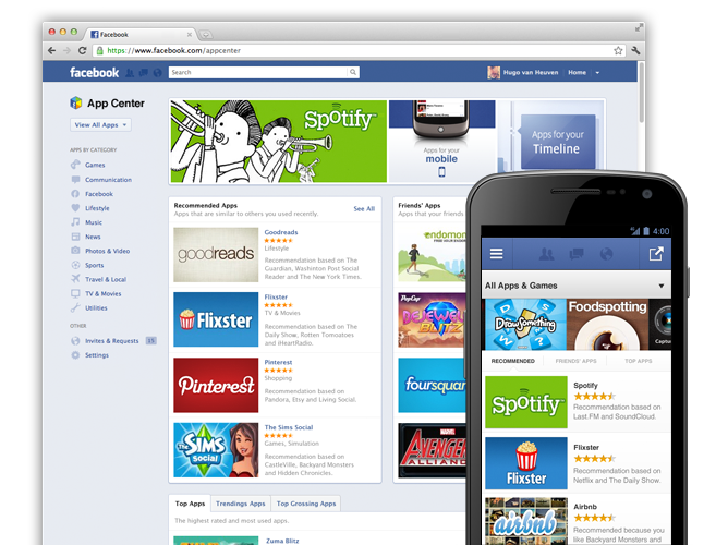 Pour poursuivre cette tendance de Facebook sur le fait de découvrir et développer des applications mobiles, Facebook a annoncé son App Center. Il est comme son nom l’indique, un centre qui va lister les meilleures applications. Il va s’agir d’une plaque tournante pour toutes les applications sociales qui peuvent être téléchargées sur les dispositifs mobiles. L’App Center sera déployé sur le Web et sur l’application mobile Facebook native que ce soit sur les dispositifs iOS mais également Android, et ce dans les prochaines semaines.