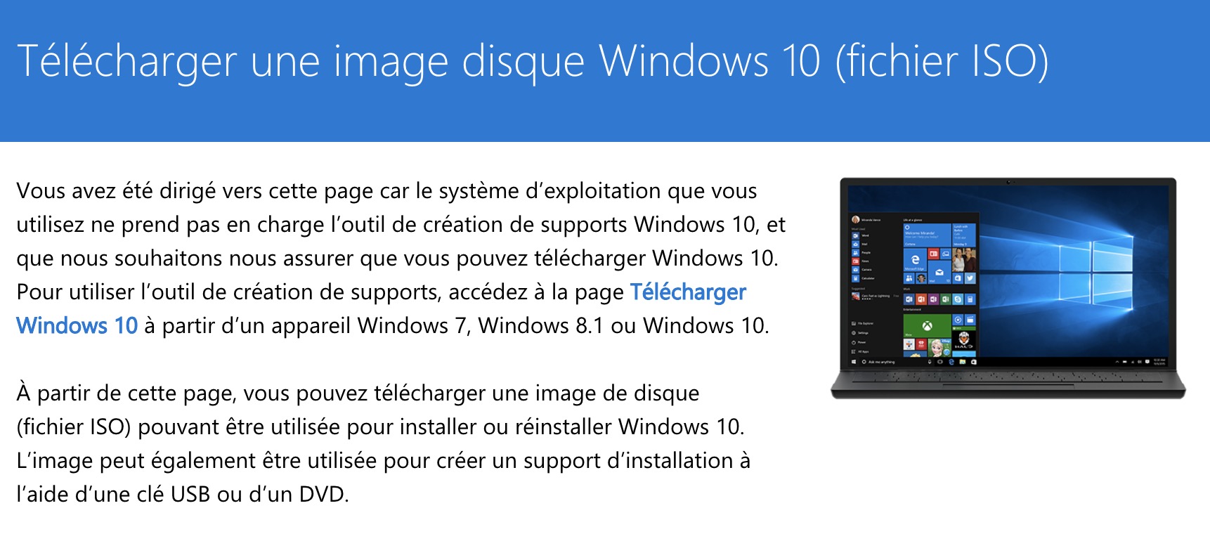 Sinon, la meilleure façon de le faire consiste à utiliser l’Assistant de mise à jour de Windows 10. Pour ce faire, il faudra télécharger une image disque de Windows 10 (fichier ISO) auprès de Microsoft.