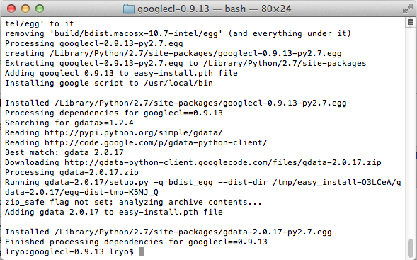googlecl:cd googlecl-0.9.13 - 3 – Assurez-vous que vous avez le client gdata-python d’installé
