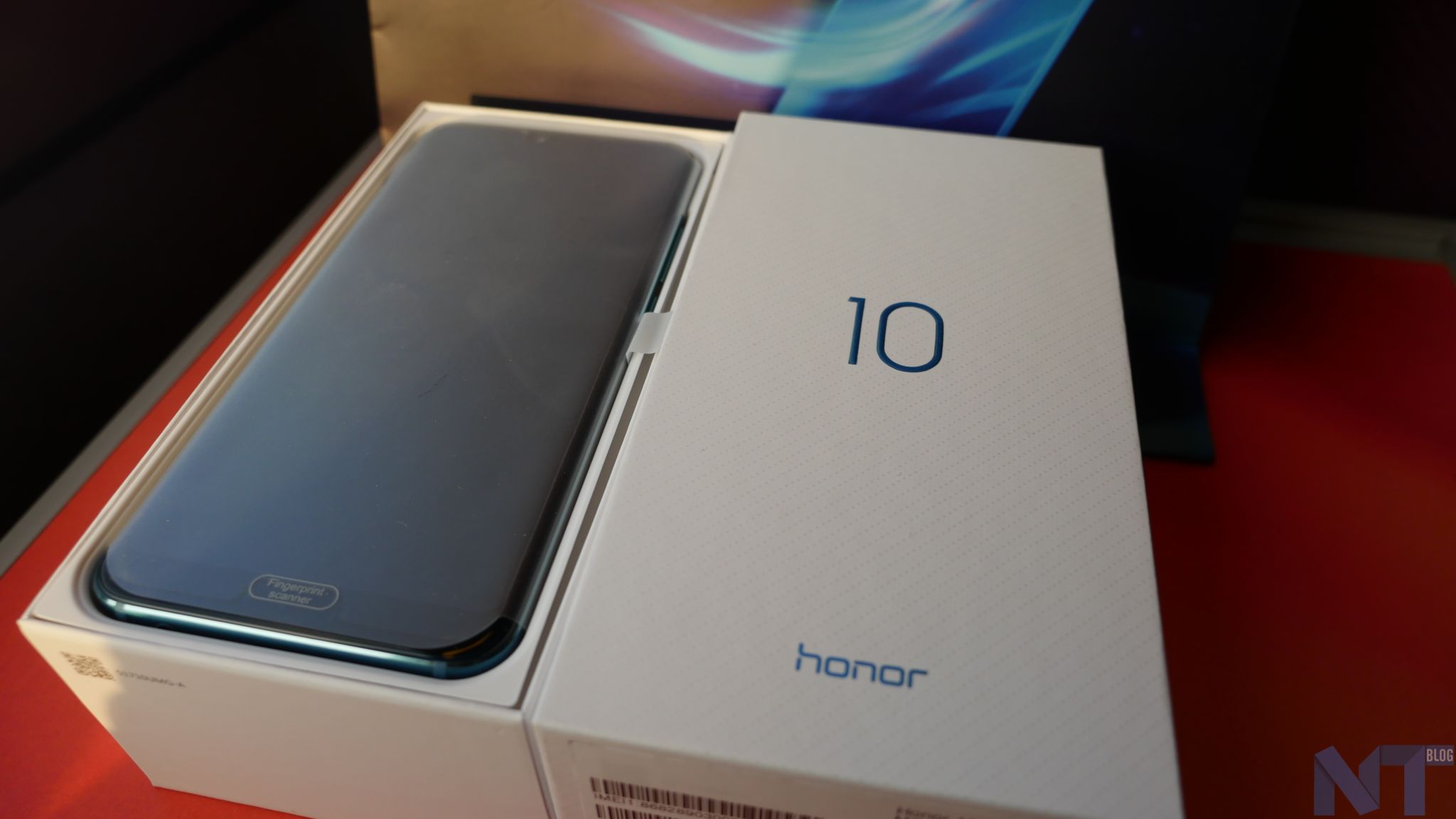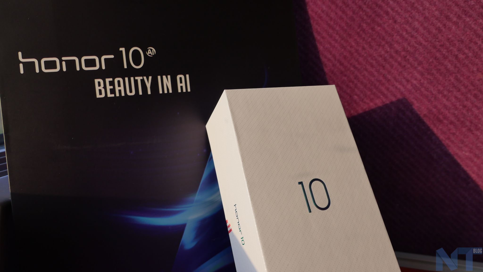 La boîte est absolument minimale, avec une façade entièrement blanche, où seuls l’écriture 10 et le logo Honor se détachent, sans aucune référence à la forme de l’appareil.