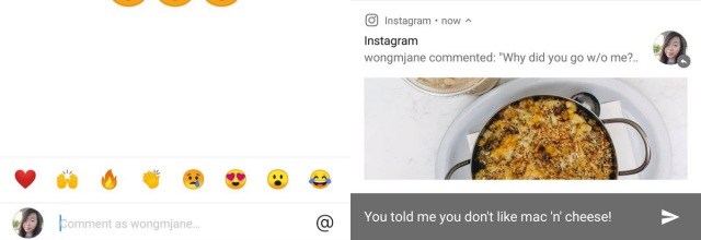 En outre, Instagram ajoutera une barre d’emoji et un bouton « @ » qui apparaîtront en haut de la barre de commentaires, ce qui simplifiera la réaction et l’interaction avec vos abonnés. Vous serez également bientôt en mesure d’aimer et de répondre à tout commentaire sur les messages Instagram directement à partir de la bulle de notification. Cela vous éviterait d’ouvrir l’application pour répondre aux commentaires.