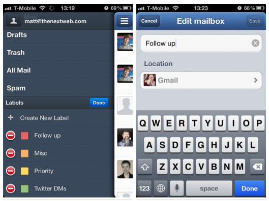 Ainsi, vous allez avoir la possibilité de créer un mail en mode paysage, mais aussi de pouvoir créer et d’éditer des labels et des dossiers, de naviguer à travers les mails par des glissements vers le haut ou vers le bas, mais aussi la traduction de l’application en neuf langues, et notamment le Français.