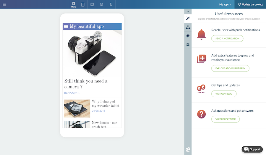 Enfin, l’équipe de développement a procédé à une refonte complète de l’organisation back-office de GoodBarber 4.5, rendant le processus global de création d’applications plus rapide, plus facile et plus intuitif.