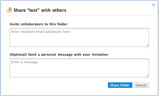 Vous serez amené à l’écran ci-dessous où vous devez entrer les adresses mail des personnes avec qui vous voulez partager le dossier. Et c’est aussi simple que cela !