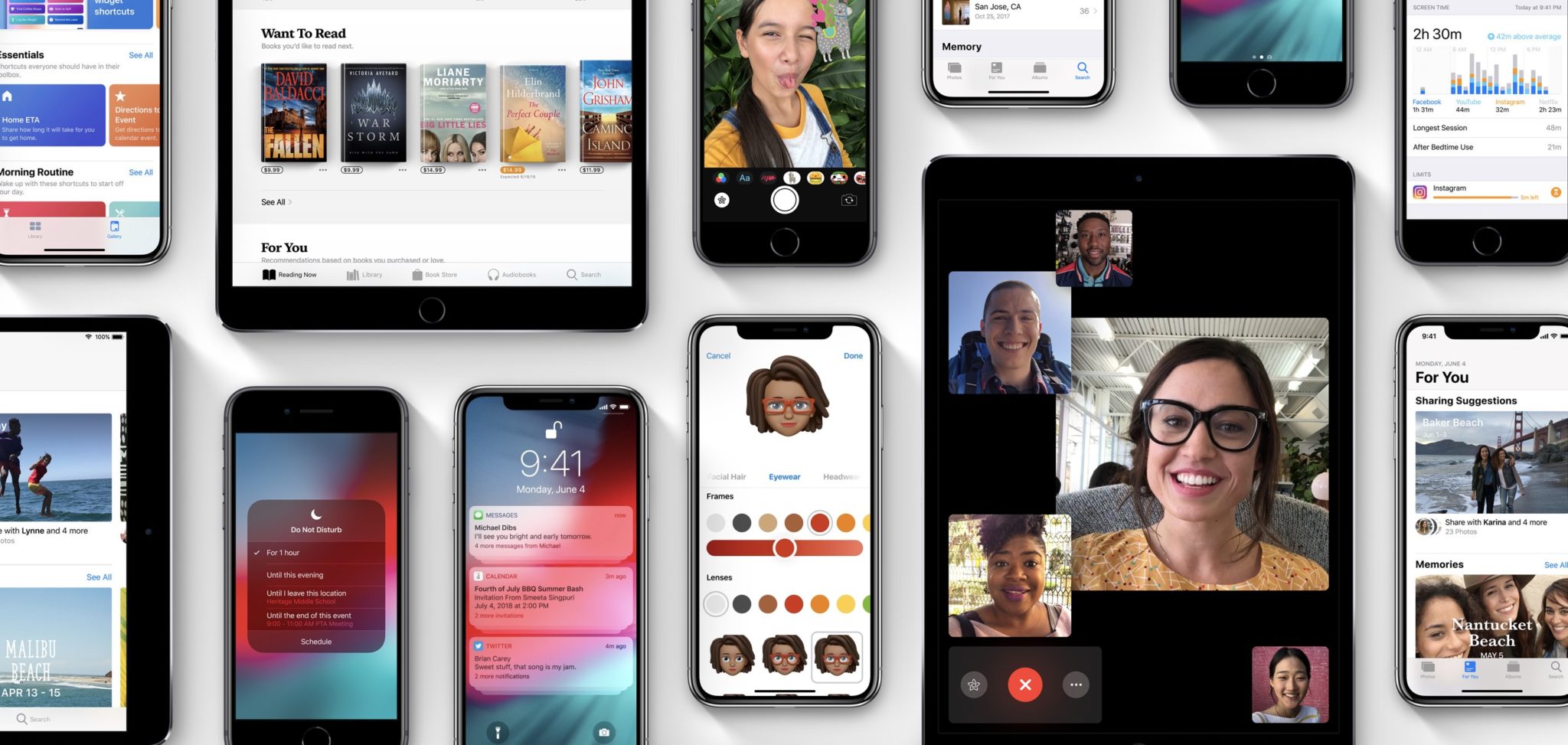 La populaire application de chat vidéo d’Apple, FaceTime, sera bientôt capable d’accueillir plus d’une conversation en tête-à-tête. iOS 12 proposera des sessions de groupe pouvant inclure jusqu’à 32 personnes, que ce soit sur iOS et macOS. Lorsque plusieurs personnes sont en communication, leurs fenêtres vidéo deviennent plus grandes lorsqu’elles parlent et rétrécissent lorsqu’elles ne le font pas. Et, vous pourrez même utiliser des caractères Animoji et Memoji pendant les appels.