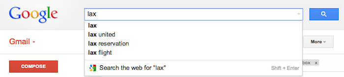 Par exemple, vous pourriez maintenant avoir comme proposition “lax reservation” ou “lax united” après avoir tapé “lax”, et ce si vous avez reçu un e-mail récemment avec une confirmation de vol pour votre voyage à Los Angeles dans votre boîte de réception, explique Isaac Elias, ingénieur logiciel Gmail.
