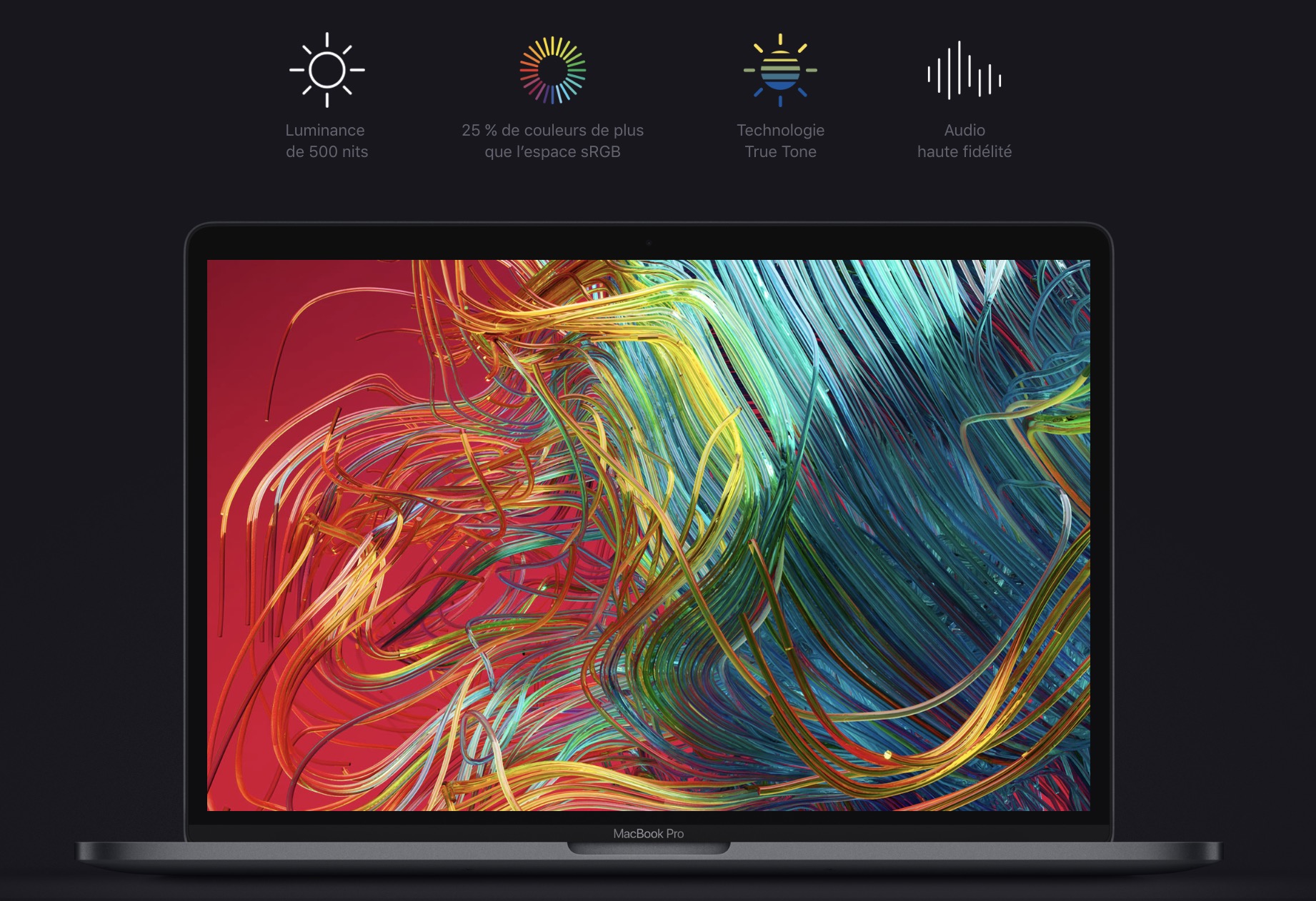 Les deux modèles du MacBook Pro 2018 vont également se vanter de la technologie d’affichage True Tone d’Apple, qui a fait ses débuts sur l’iPad Pro, et que l’on retrouve également sur l’iPhone 8, l’iPhone 8 Plus et l’iPhone X. Celle-ci détecte la lumière ambiante et la luminosité de l’environnement dans lequel vous vous trouvez, et ajuste l’affichage en conséquence, afin que vous obteniez la meilleure qualité d’image possible, peu importe où vous travaillez.
