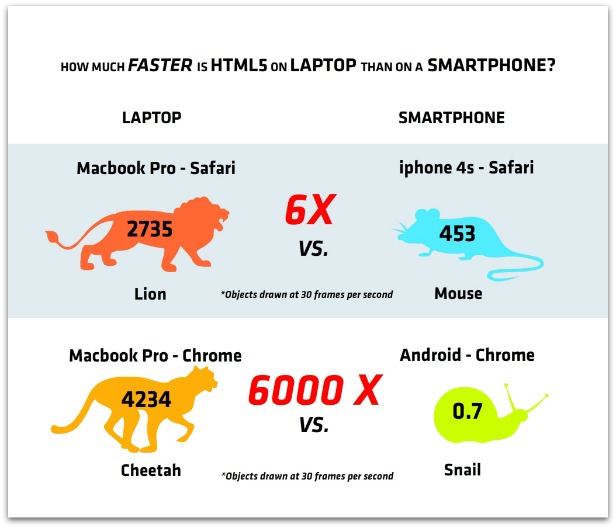 Étant donné le potentiel d’HTML5, Spaceport a décidé de comparer les performances d’iOS par rapport à celle d’Android. En conclusion de son premier rapport, la firme indiquait qu’iOS “manipule” beaucoup mieux l’HTML5 que Android.