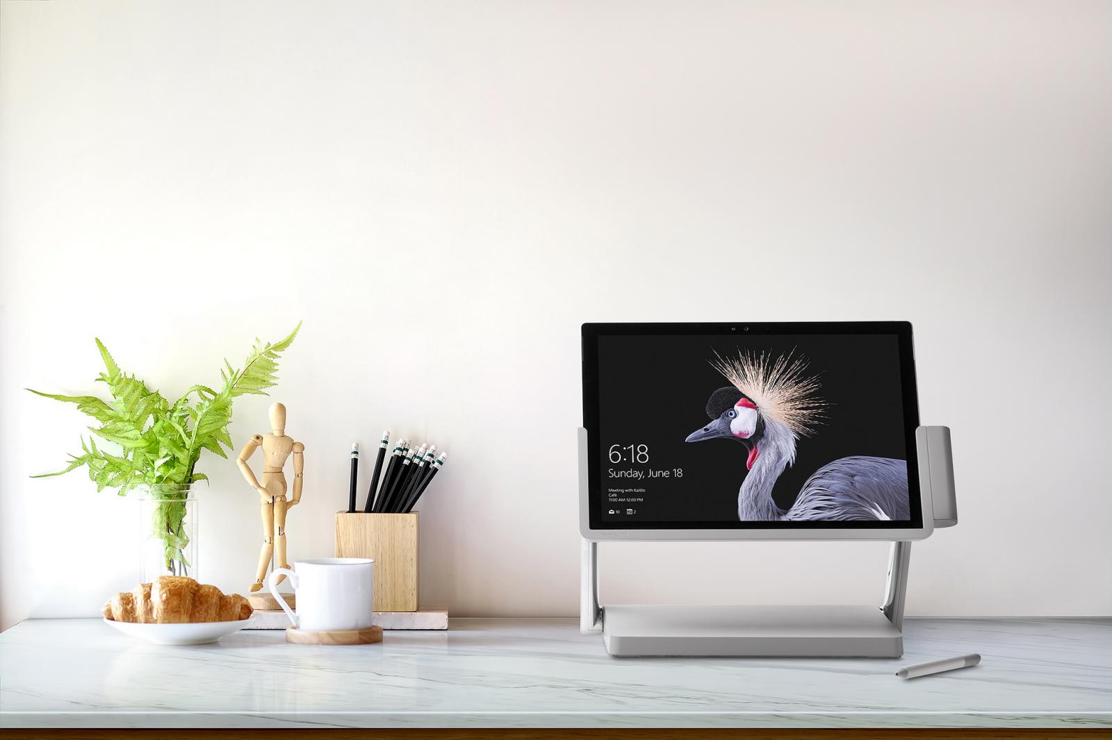Et donc, que faire si vous avez déjà une Surface Pro et que la taille vous convient parfaitement, mais que vous souhaitiez la flexibilité et la stabilité d’un Surface Studio ? Eh bien, le fabricant d’accessoires Kensington a maintenant une réponse à cette interrogation : voici la SD7000 Dual 4K Surface Pro Docking Station.