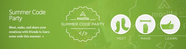 Pour relancer le programme, Mozilla fait campagne pour ce que la Fondation appelle le Summer code Party. Mozilla encourage les volontaires pour accueillir gratuitement les événements Webmaker locaux et enseigner dans le monde entier, pour aider ceux qui sont intéressés d’apprendre à développer pour le Web. Mozilla a fourni des kits d’événements et de projets de démarrage pour le rendre plus facile. Le Summer code Party a de nombreux partenaires tels que Creative Commons, Tumblr et SoundCloud.