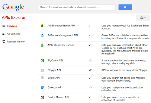 Poursuivant son nettoyage de printemps, le Google APIs Explorateur vient de recevoir une mise à jour centrée sur une nouvelle conception qui rend l’expérience globale beaucoup plus jolie, à l’image de la nouvelle expérience de Google Docs ou encore de Google Drive.