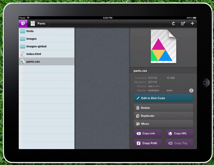 Concernant Diet Coda, avec ce dernier vous serez en mesure d’utiliser un terminal SSH, et apporter des modifications rapides de contenu à votre site via l’éditeur. Ainsi, cela va permettre non seulement de prévisualiser vos modifications sur l’iPad pendant vos phases de développement, mais également de modifier vos sites Web depuis votre tablette, et ce sans passer allumer votre ordinateur.