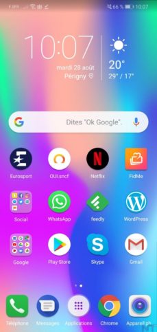 L’écran en façade est magnifique. On aurait même aimé que la dalle soit plus grande. Personnellement ces derniers mois j’ai utilisé des smartphones plus grands, alors j’ai trouvé que l’écran LCD IPS de 5,84 pouces du Honor 10 était un « petit ». Un élément positif d’un écran de cette taille est le fait que la résolution full HD+, soit 2 280 x 1 080 pixels, est plus que net.