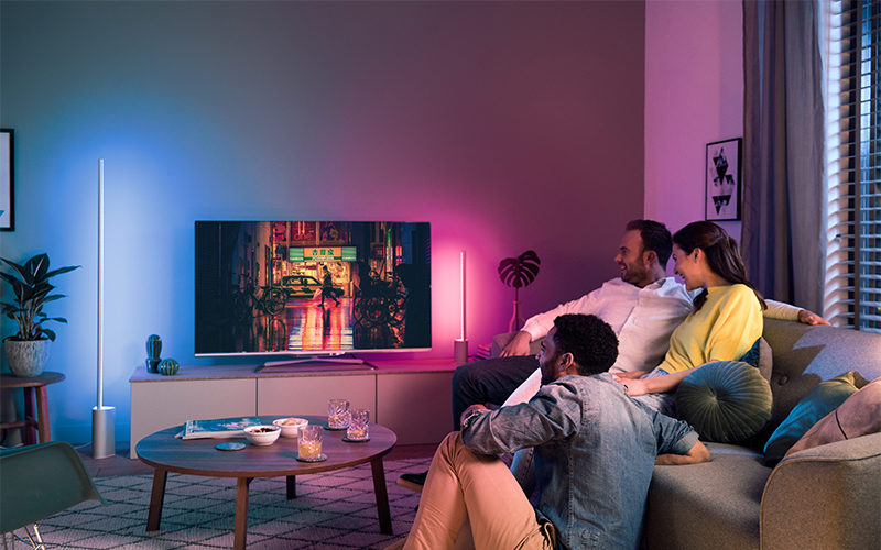 Conçu pour être positionné devant ou derrière votre téléviseur, le Hue Play peut être synchronisé avec vos systèmes de divertissement, ce qui rend les sessions de cinéma à domicile et de jeu encore plus immersives. À contrario, le Hue Signe est un appareil vertical qui se présente sous la forme d’une lampe de sol ou de table et qui est placé à côté de votre téléviseur ou contre un mur. Il peut également être synchronisé avec les systèmes de divertissement, de musique et de jeu ou simplement utilisé pour ajouter une touche de couleur à votre maison.