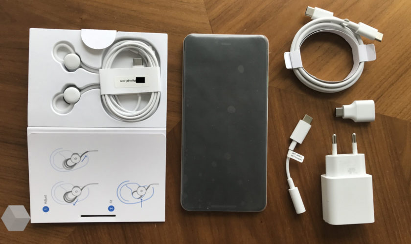 Comme vous pouvez le voir sur la vidéo, la boîte contient le Pixel 3 XL (qui semble beaucoup plus gros que dans les autres photos divulguées, mais uniquement à cause de la taille des mains du YouTuber), les écouteurs, un câble USB Type-C, un adaptateur de prise casque, un adaptateur USB Type-C vers USB Type-A et une prise secteur murale.