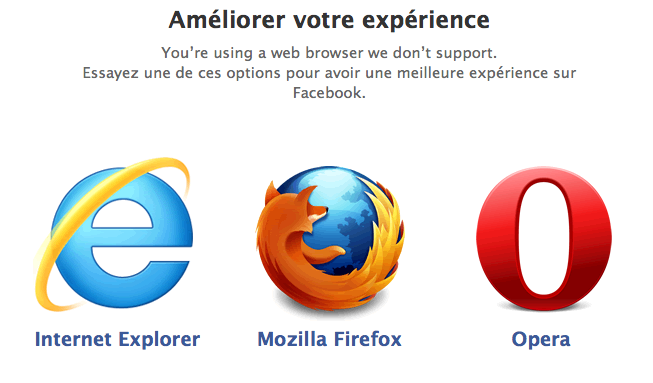Techniquement, Facebook ne devrait pas porter attention au navigateur utilisé par une personne utilise, et ce aussi longtemps que l’utilisateur se sert de Facebook et l’utilise abondamment. C’est dans le meilleur intérêt de Facebook de s’assurer que chaque utilisateur a la meilleure expérience de sorte qu’il utilise le site plus souvent et profite de la visite.