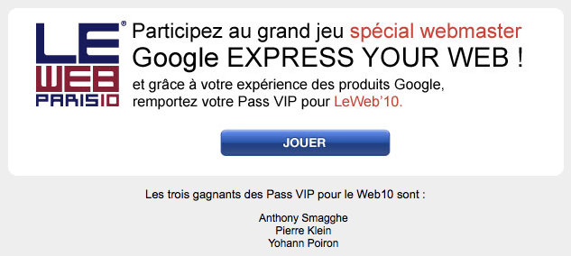 Les gagnants du jeu concours Google Express Your Web ont été désignés ce matin, et vous êtes l’un des 3 heureux gagnants.
