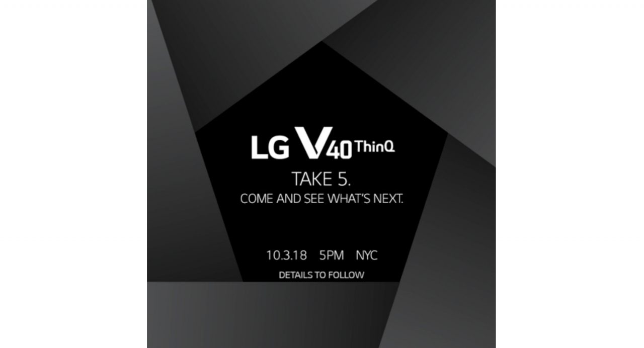 Les rumeurs ont commencé avec les invitations adressées aux médias envoyées par LG Electronics à son événement du 3 octobre à New York, où elle dévoilera le smartphone V40 ThinQ, avec les lettres portant la phrase « Take 5. Come and see next ».