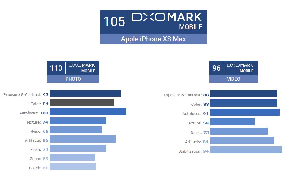 Néanmoins, même s’il s’agit d’une mauvaise nouvelle pour Apple, il est difficile d’être déçu par un score final de 105 points. Cela signifie que l’appareil photo de l’iPhone XS Max est légèrement supérieur à celui du Galaxy Note 9, qui est son plus proche concurrent.