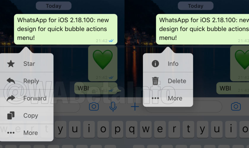 Enfin, un nouveau menu contextuel s’affiche dans les conversations. Auparavant, chaque fois que vous appuyiez longuement sur un message, un menu horizontal apparaissait pour vous fournir des options telles que « Répondre », « Information » et « Transférer ».