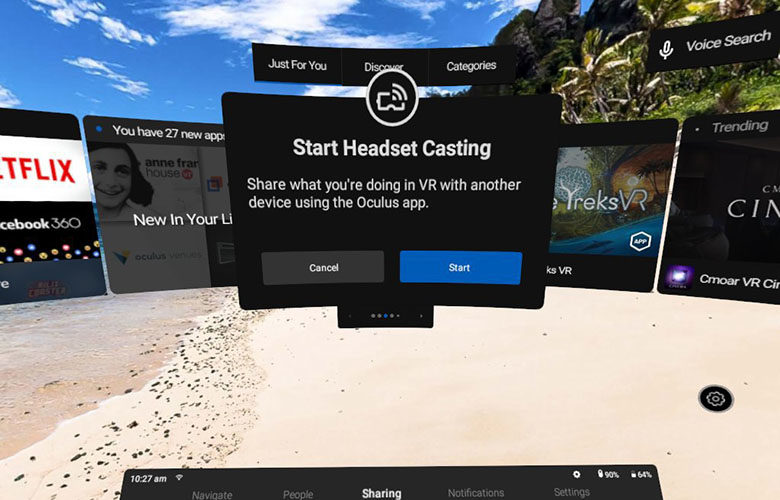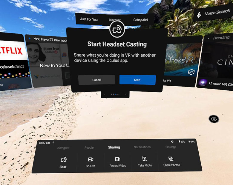 La nouvelle fonctionnalité, intitulée « Cast », vous offre la possibilité de partager ce que vous faites dans le casque VR avec un autre appareil, afin que vos amis puissent voir votre expérience de jeu pendant que vous jouez.