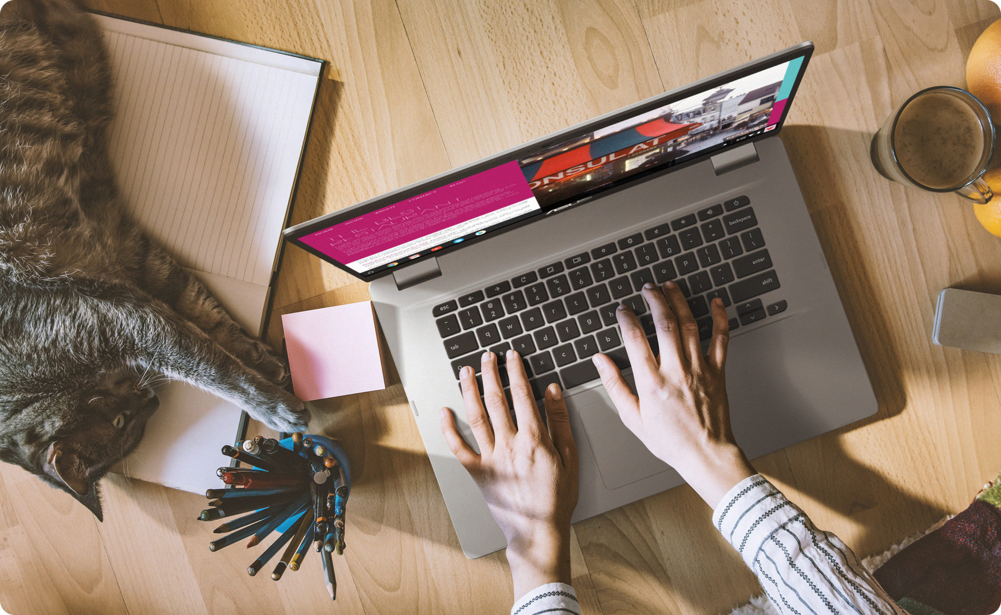 Il a une charnière à 180 degrés pour pouvoir être posé à plat si nécessaire. Le Chromebook C523 est alimenté par un processeur double-cœurs Intel Celeron ou un processeur quadricœur Intel Pentium, selon la configuration que vous choisissez. Il en va de même pour la mémoire vive (RAM), disponible en configuration 4 Go ou 8 Go.
