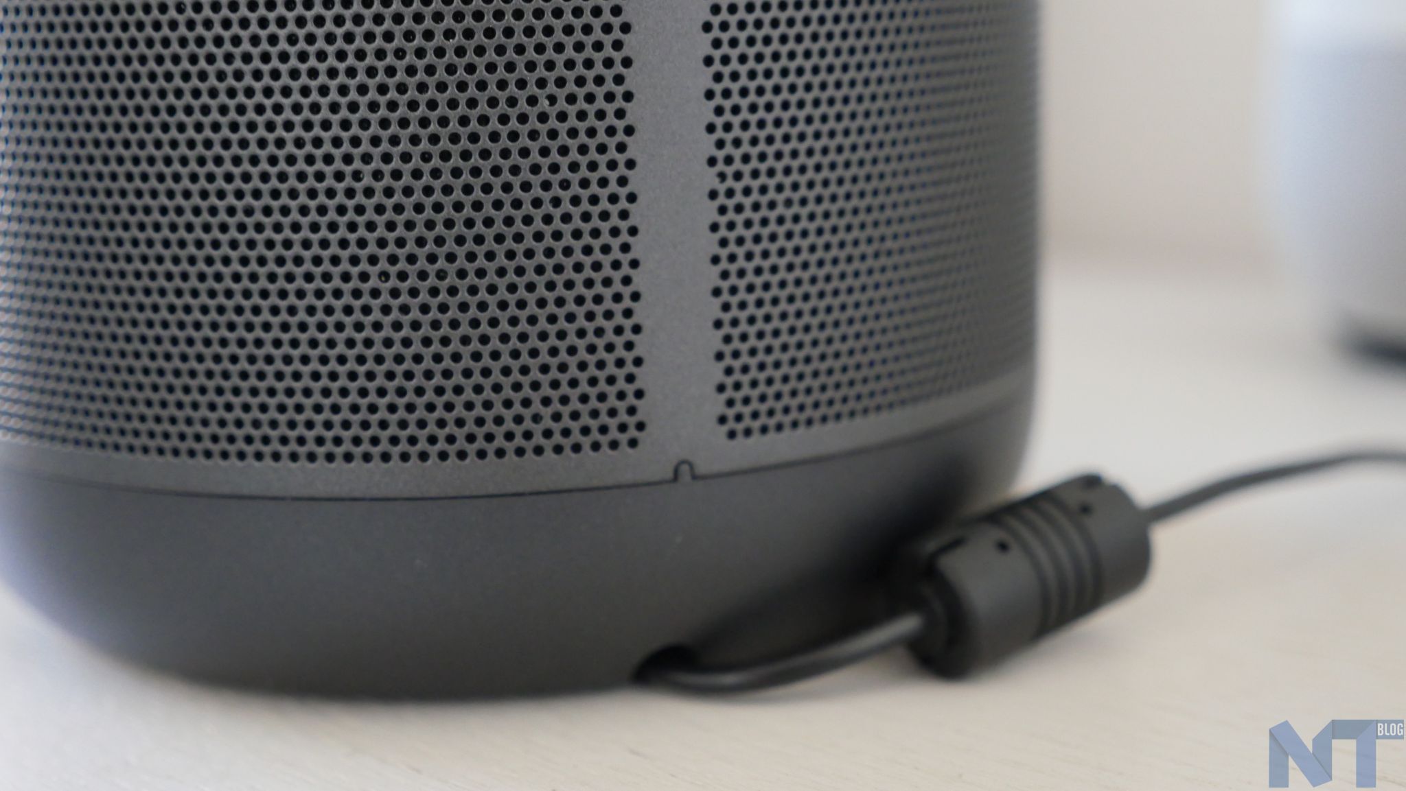 Comme de nombreuses enceintes de ce type, vous devrez également la ranger dans un endroit et la brancher. Aucune portabilité donc. Pour vous aider, il y a une petite découpe assez pratique au bas de l’enceinte pour éviter que celle-ci se retrouve bancale, et que le câble soit suffisamment long pour vous permettre de la poser où vous le souhaitez, comme une étagère, une bibliothèque ou un plan de travail de cuisine. — sans trop de problèmes.