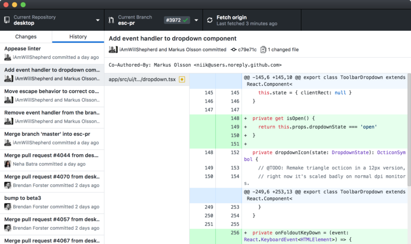 GitHub a lancé GitHub Desktop en 2017, qui a rapidement séduit les utilisateurs. Selon la société, environ 10 % de toutes les fusions soumises depuis l’application génèrent un conflit. Améliorer la façon dont les développeurs les résolvent était donc une priorité.