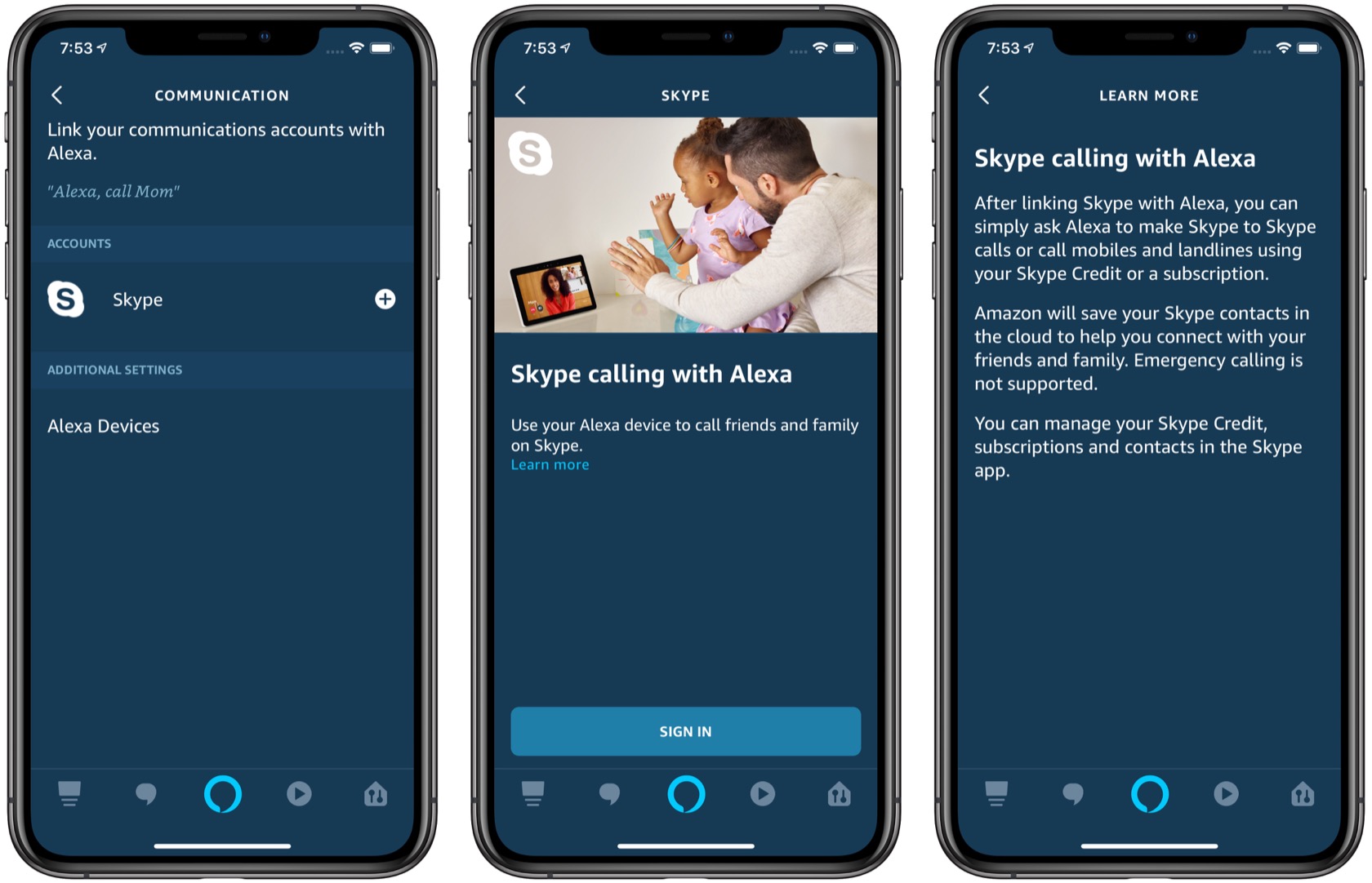 L’installation devrait être simple. Vous aurez évidemment besoin d’un appareil Echo et d’un compte Skype. Depuis l’application Alexa pour iOS ou Android, allez dans la page « Paramètres » et choisissez « Communication », puis « Skype ». À ce stade, vous devez vous connecter à l’aide de vos informations d’identification Skype.