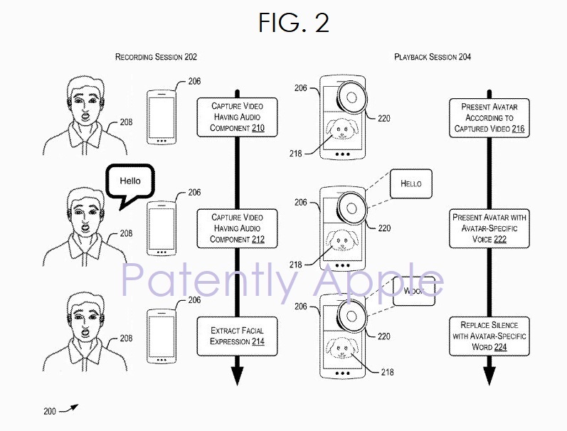 Ce nouveau système est très analogue à ce qui est déjà en jeu avec certains masques de réalité augmentée Snapchat et/ou Facebook. Une personne peut porter un masque extrêmement amusant, puis ouvrir la bouche. En ouvrant la bouche, elle se transforme en loup ! L’idée d’Apple dans ce brevet est qu’une chose analogue pourrait se produire avec des mots parlés.