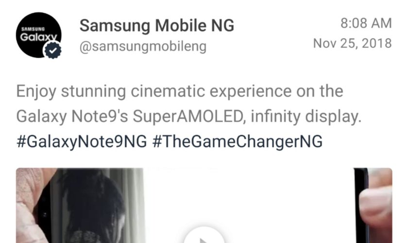 Samsung a beaucoup de comptes Twitter vérifiés, partout dans le monde, et celui qui a provoqué la gaffe vient en réalité du Nigéria. Sur place, une personne a posté une annonce mettant en exergue « l’expérience cinématographique époustouflante » du Galaxy Note 9 en utilisant un iPhone pour le dire. Pour être juste, une erreur sur le compte local de Samsung ne constitue pas une erreur de la part d’une entreprise. Cela aurait certainement été scandaleux si le compte Twitter principal de Samsung avait commis l’erreur.