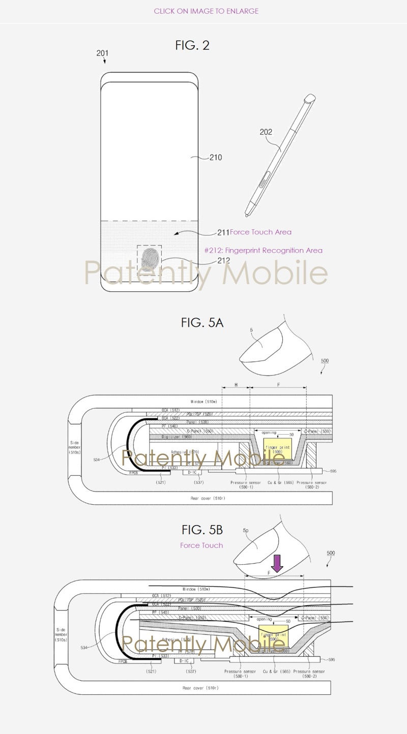 Mais, elle tente peut-être de rattraper ses rivaux chinois, du moins si l’on en croit des fuites et des spéculations. Mais, le géant sud-coréen pourrait aussi également les surpasser en allant plus loin que ses petits camarades. Un nouveau brevet déposé par Samsung l’année dernière révèle les endroits où elle pourrait utiliser de tels capteurs FoD, y compris, surprise surprise, sur une smartwatch.